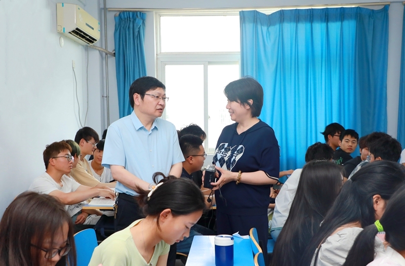课堂上,李学志凝神专注听讲,认真记录了教师的授课情况,细心观察学生的精神风貌和听课状态。课后,李学志与授课教师进行了面对面交流,对教学设计、课程内容、教学方法等给予客观评价,重点就如何进一步加强思政课教学创新和提升育人实效等方面提出指导性的意见和建议。